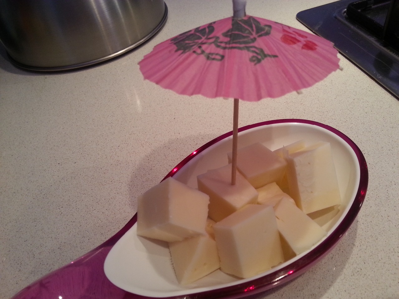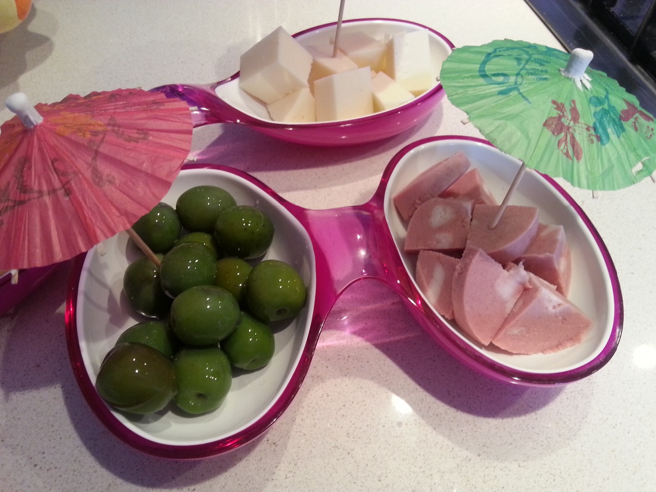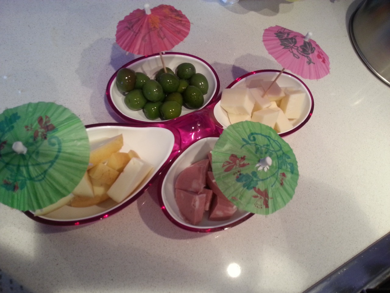 HO IMPIATTATO IN UNA ANTIPASTIERA E RALLEGRATO CON DEGLI STUZZICADENTI AD OMBRELLINI