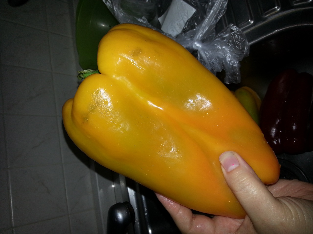 NEL FRATTEMPO LAVATE E TAGLIATE I PEPERONI. IN QUESTO CASO HO USATO 3 PEPERONI ABBASTANZA GRANDI.
