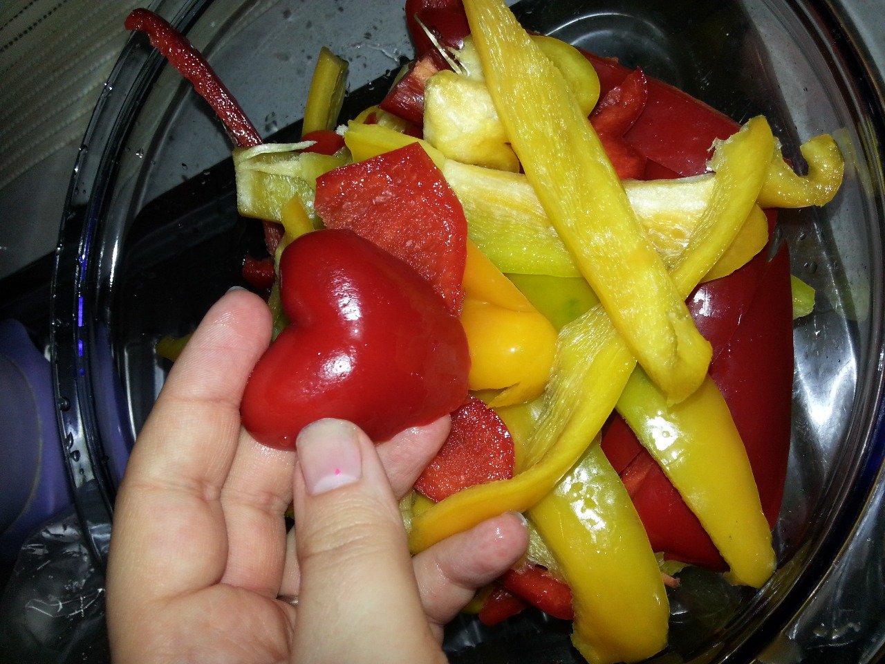 LI HO TAGLIATI A STRISCE, COME VEDETE MI E' CAPITATA LA FORMA DI UN CUORE SENZA VOLERLO, IL ROMANTICISMO NEL SANGUE!!!