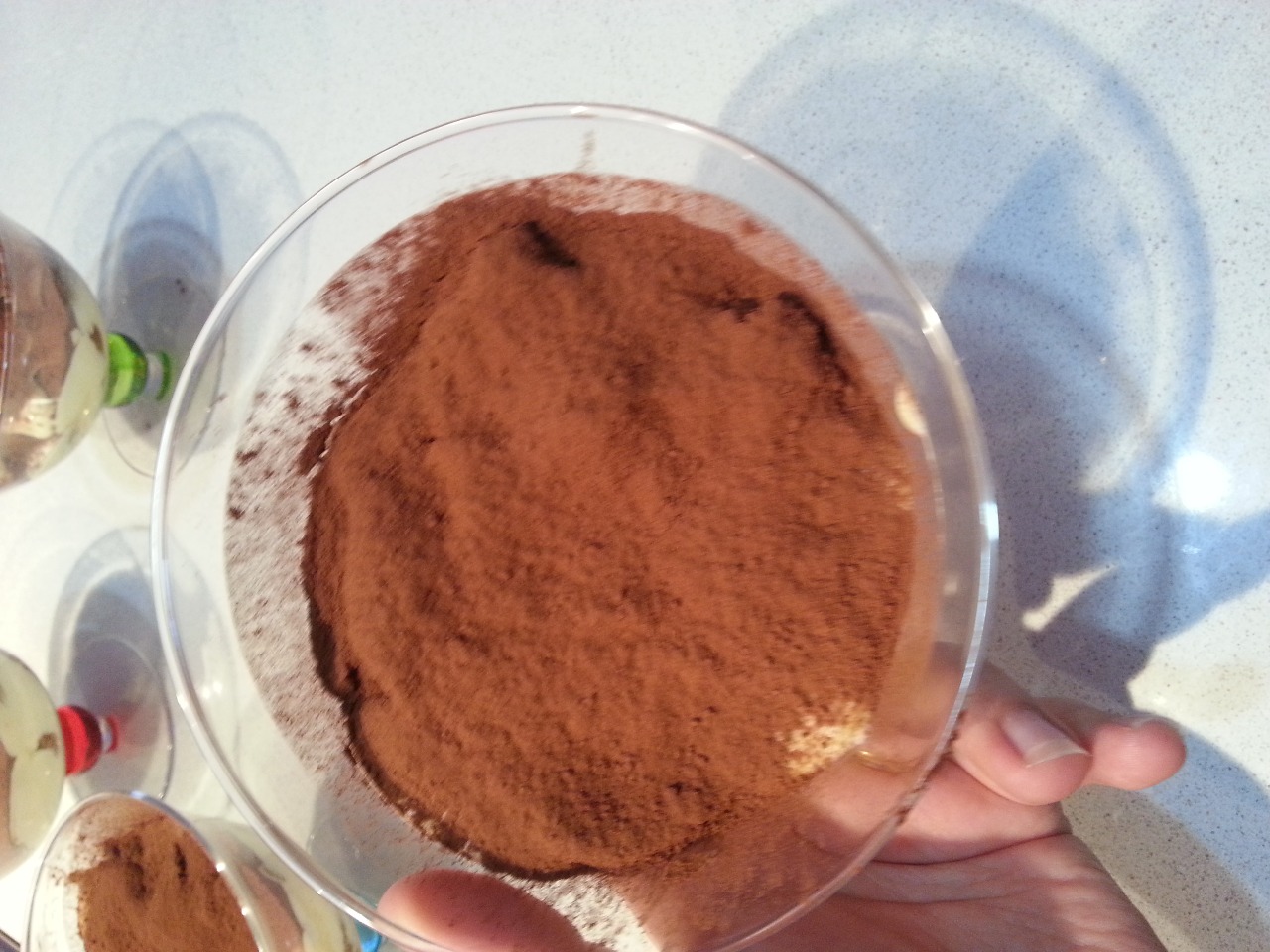 NELL'ULTIMO STRATO RICOPERTO DI CREMA SPOLVERATE DI CACAO AMARO.