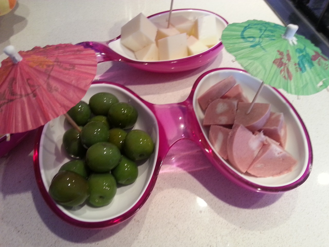 HO IMPIATTATO IN UNA ANTIPASTIERA E RALLEGRATO CON DEGLI STUZZICADENTI AD OMBRELLINI