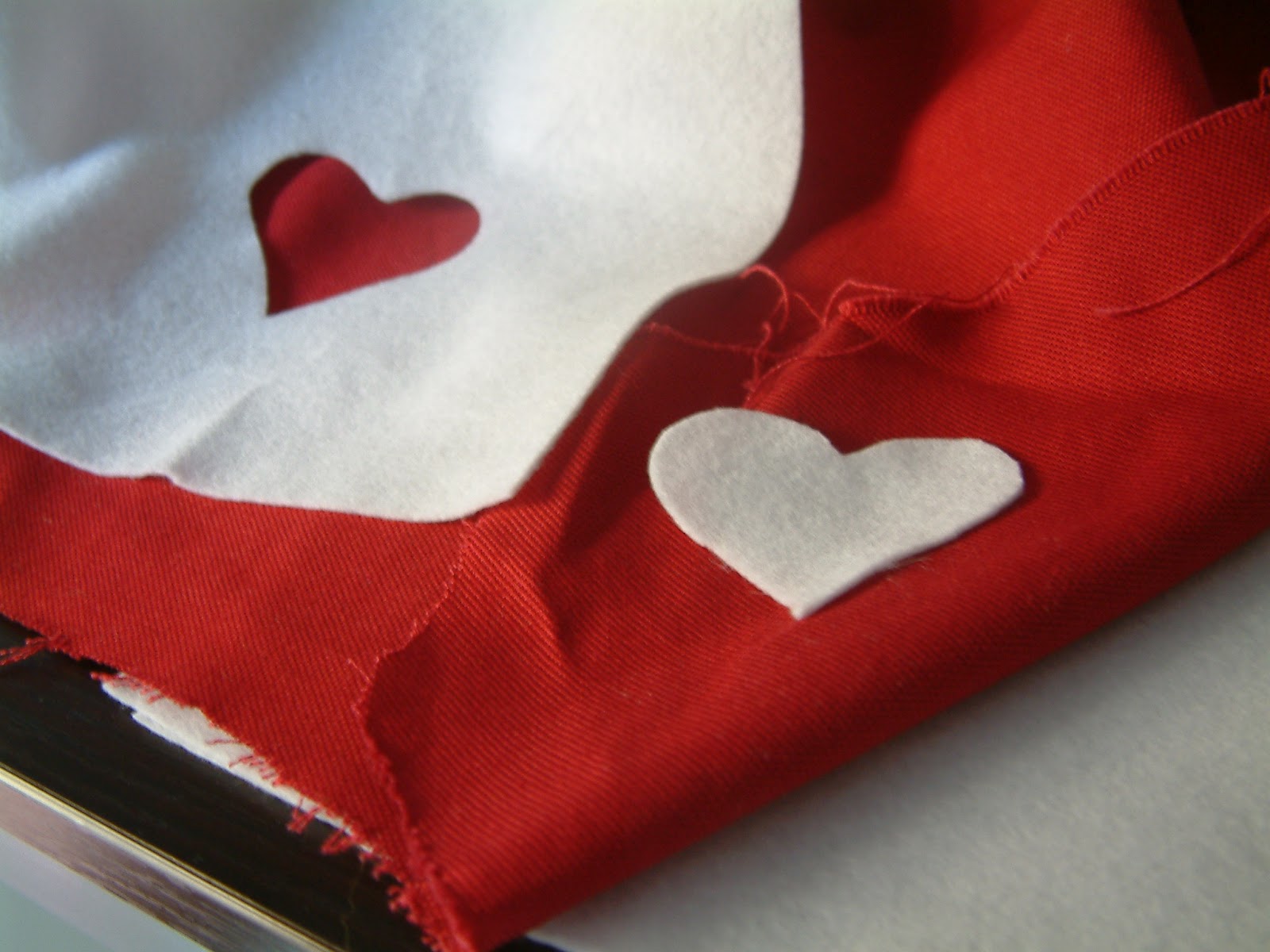 Se ti piace cucire puoi fare dei cuori che farai con la stoffa bianchi se la tovaglia la scegli rossa, rossi se la tovaglia sarà bianca.