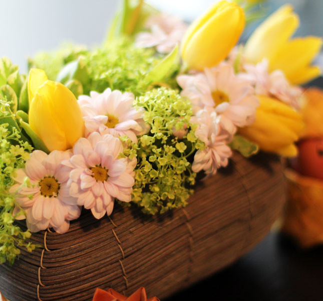 Per dare ancora di più un tocco di romanticismo, sarebbe carino fare un cestino con dei fiori da poggiare sulla tovaglia.